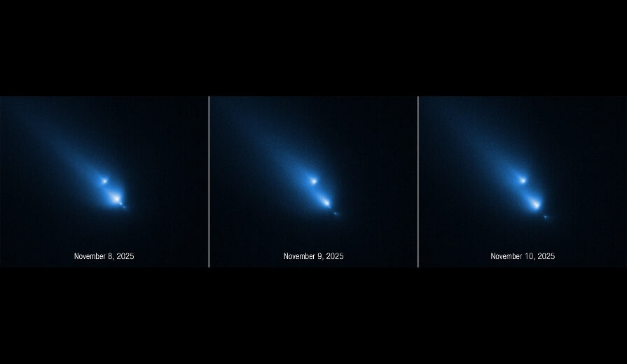 กล้องฮับเบิลจับภาพเหตุการณ์หาชมยาก ดาวหางแตกตัวขณะเดินทางออกจากระบบสุริยะ