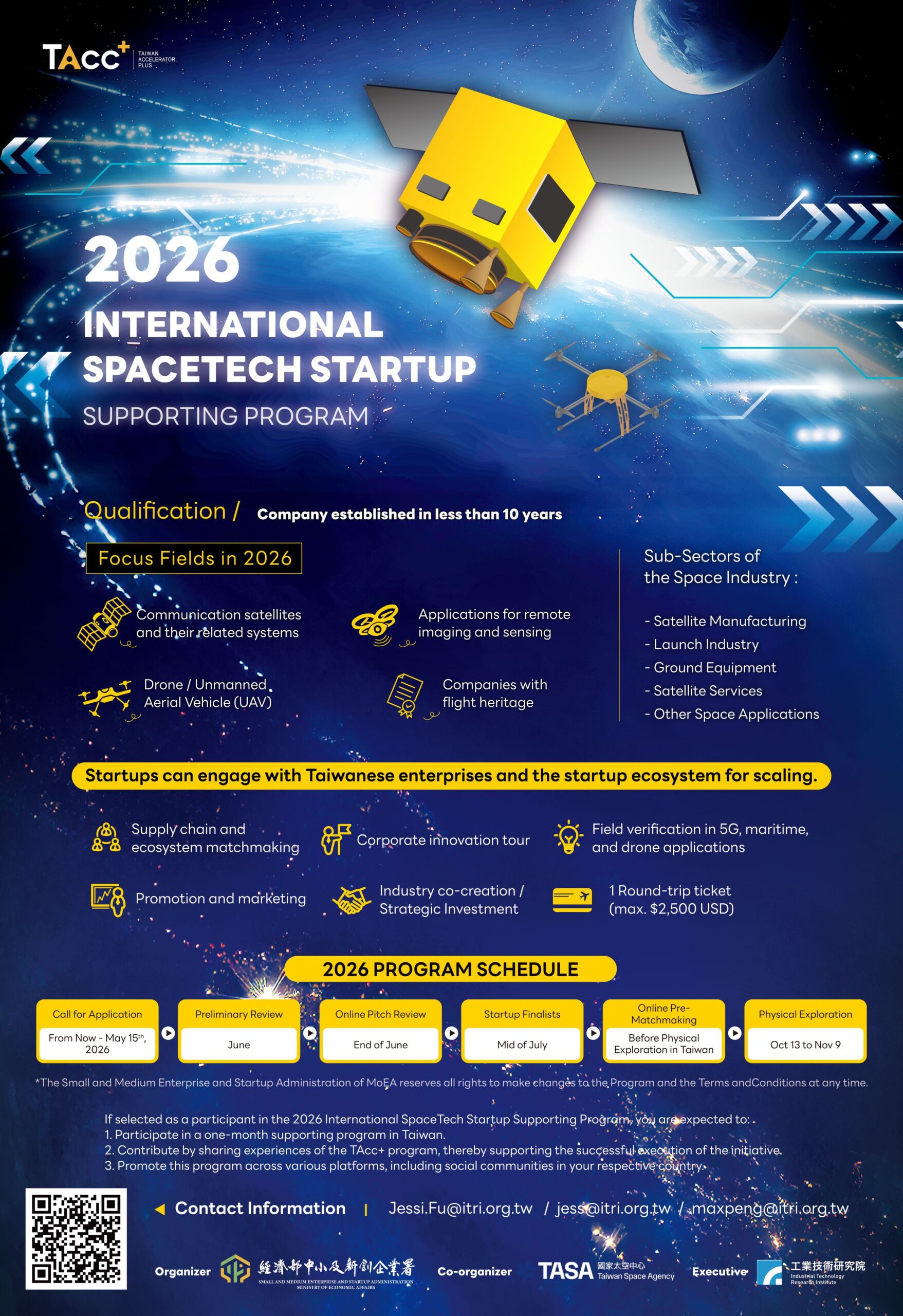 ไต้หวันเปิดประตูต้อนรับผู้ประกอบการด้านเทคโนโลยีอวกาศจากทั่วโลกอีกครั้ง กับโครงการ TAcc+ International SpaceTech Startup Supporting Program ประจำปี พ.ศ. 2569 โครงการสำคัญที่จะช่วยผลักดันธุรกิจสตาร์ตอัปให้เติบโตในระดับสากล ผ่านการเชื่อมโยงกับระบบนิเวศอุตสาหกรรมอวกาศ และห่วงโซ่อุปทานที่แข็งแกร่งของไต้หวัน