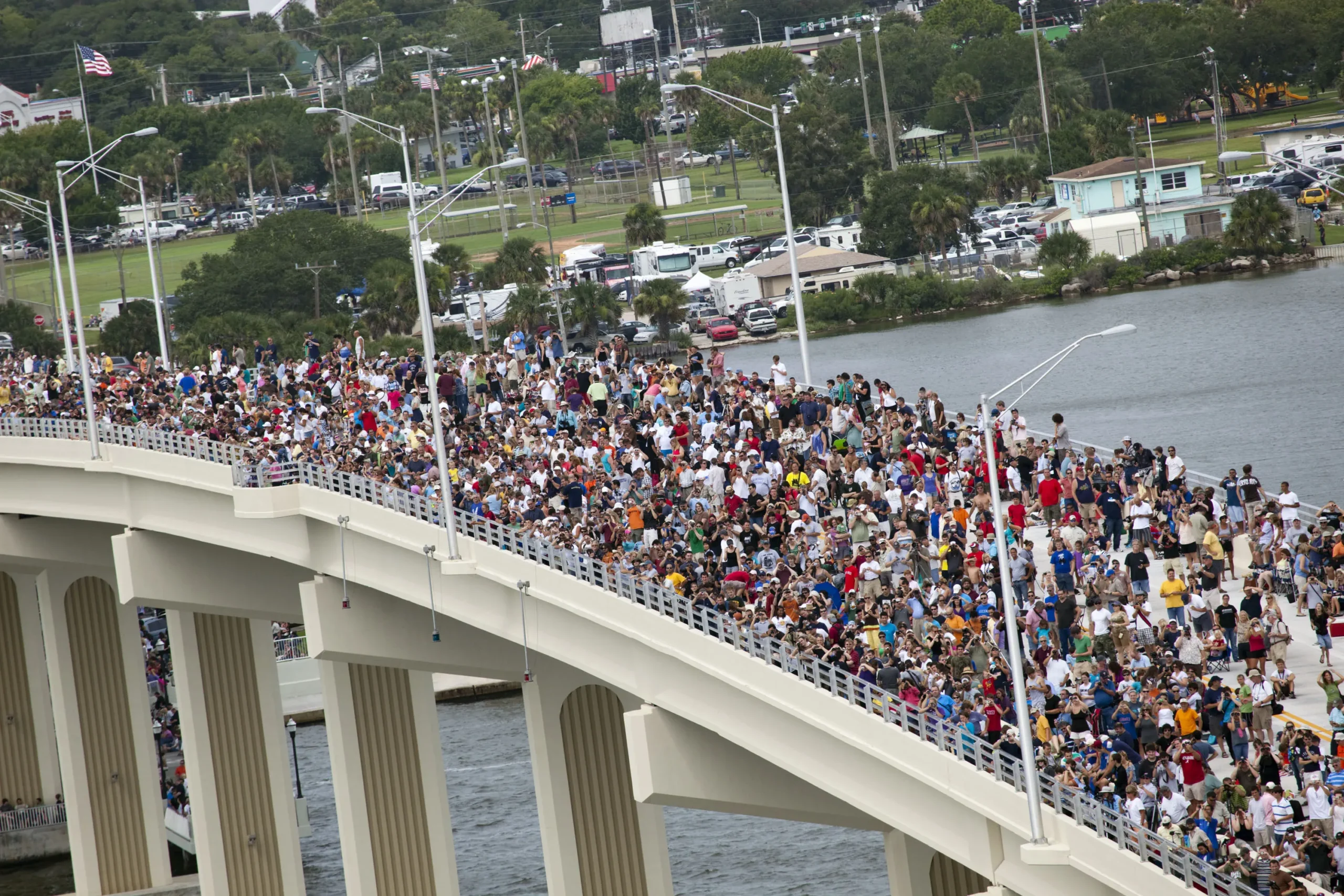 วันที่ 8 กรกฎาคม ค.ศ. 2011 ผู้คนในพื้นที่และนักท่องเที่ยวจำนวนมหาศาลต่างพากันไปเบียดเสียดอยู่บนสะพาน เอ. แมกซ์ บริวเวอร์ (A. Max Brewer Bridge) ในเมืองทิทัสวิลล์ รัฐฟลอริดา เพื่อเฝ้ามองแสงไฟสีแดงฉานจากจรวดของโครงการกระสวยอวกาศ (Space Shuttle Program) ขององค์การนาซา (NASA) ที่กำลังจะทะยานขึ้นสู่ท้องฟ้าเป็นครั้งสุดท้าย