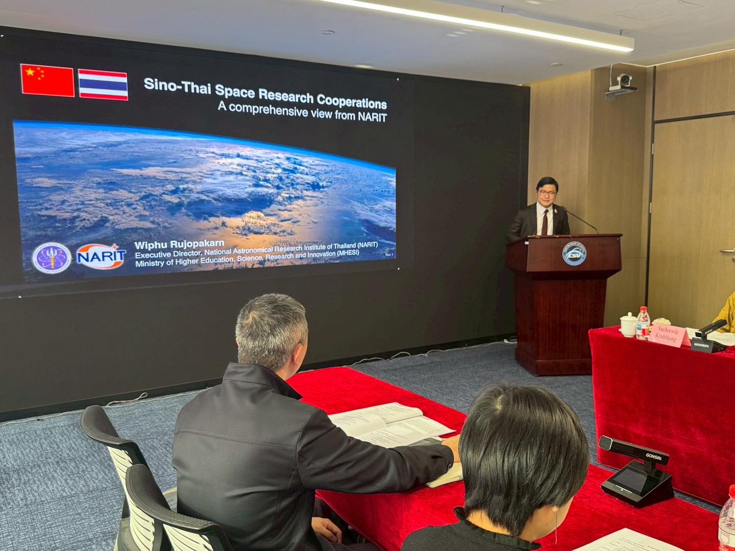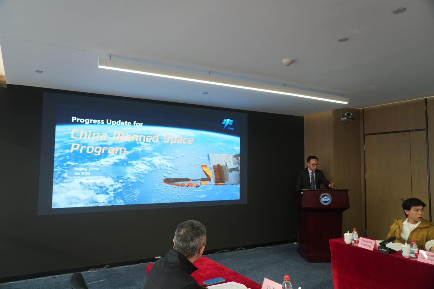 เมื่อวันที่ 26 มกราคม พ.ศ. 2569 นางสาวพสุภา ชินวรโสภาค อัครราชทูตที่ปรึกษา ฝ่ายการอุดมศึกษา วิทยาศาสตร์ วิจัยและนวัตกรรม ประจำสถานเอกอัครราชทูต ณ กรุงปักกิ่ง ได้นำคณะผู้แทนจากหน่วยงานด้านอวกาศและการวิจัยชั้นนำของไทย เข้าพบปะหารือกับนายลู่ เหยาเฟิง รองผู้อำนวยการสำนักวางแผนแบบบูรณาการ แห่งองค์การอวกาศที่มีมนุษย์ควบคุมแห่งประเทศจีน หรือ ซีเอ็มเอสเอ (China Manned Space Agency – CMSA) ซึ่งเป็นหน่วยงานหัวใจสำคัญที่กำกับดูแลภารกิจอวกาศที่มีมนุษย์ควบคุมทั้งหมดของจีน ไม่ว่าจะเป็นการบริหารจัดการสถานีอวกาศเทียนกง การปฏิบัติการของยานอวกาศเสินโจว รวมถึงการคัดเลือกและฝึกฝนนักบินอวกาศ